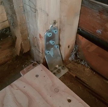 金物によって、柱やはりをしっかりつなげ、地震の力で外れてしまわないようにします。